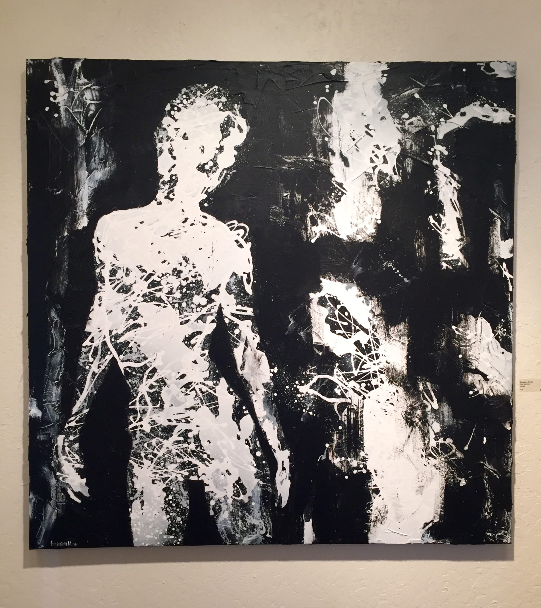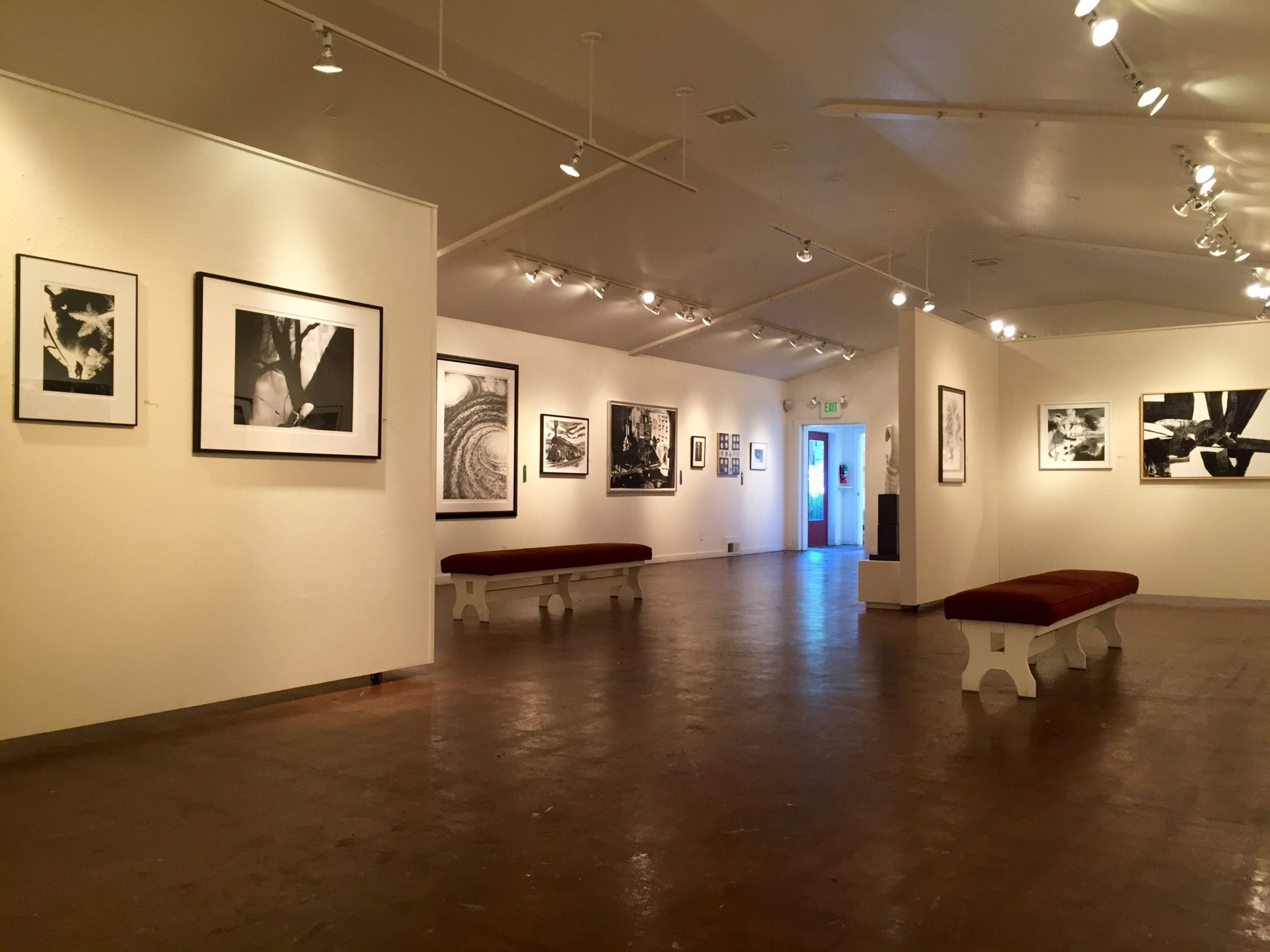 Rinkovsky provided this inspiration for artists submitting work: “Black and White are opposite ends of the Light/Dark Value Scale but each of these extremes is rich in subtle temperature and hue shifts—the cool blue-black of Chinese calligraphy or the warm, ivory white of marble. I hope to offer an exhibition of a more nuanced balance between black and white, an open-ended conversation of the use of light and dark in all media of art.” Entries were allowed to use 5 to 10% of accent color, as seen in several of the pieces on display.
