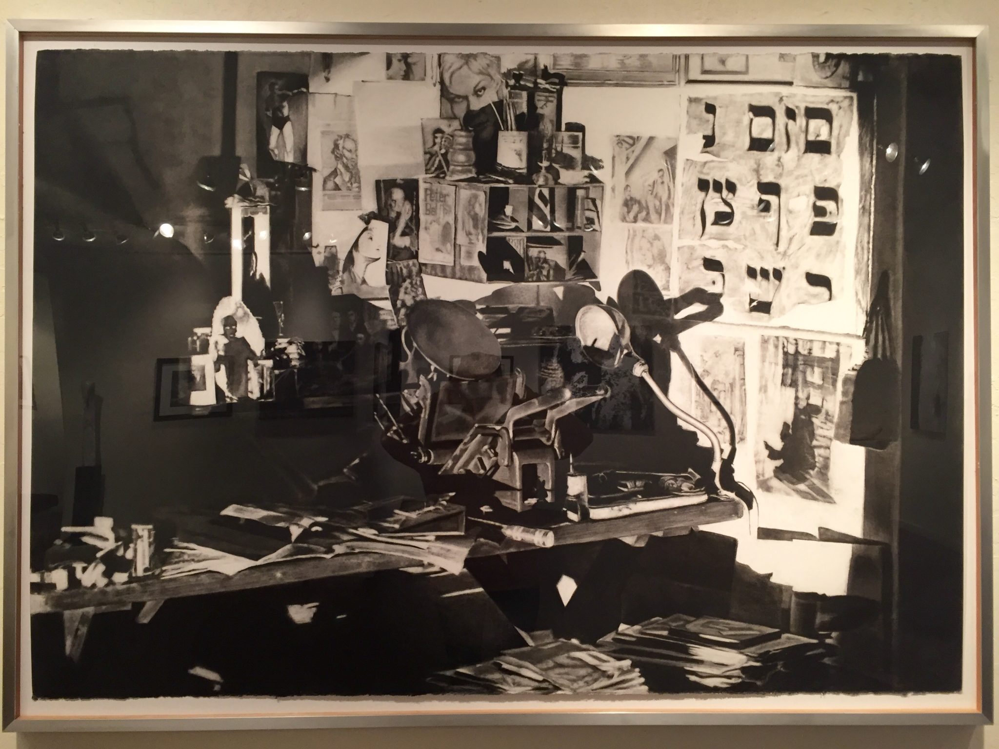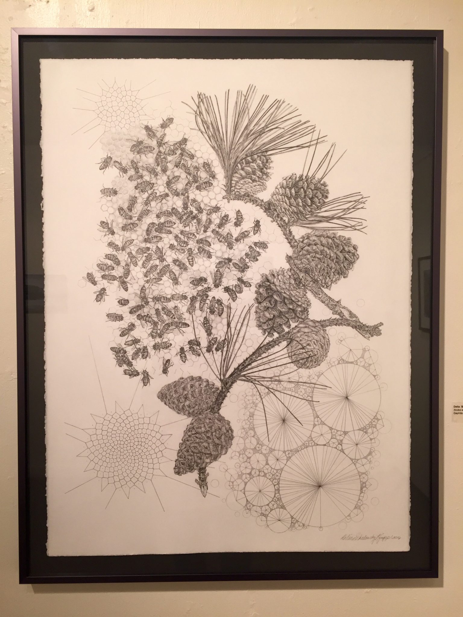First Place was awarded to James Allen for his charcoal drawing entitled “Berman Studio”. The Second Place went to Glenn Carter for a mixed media piece, “When Warriors Become Poets.” Third Place was given to Delia Schalansky Krupp for her graphite on BFK paper, “Nodes and Boundaries.” Five Honorable Mentions were also awarded for cotton on linen, pen and ink, photography, and mixed media work.